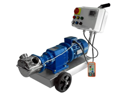 The standard build is supplied with the INV flexible impeller pump mounted on the trolley and supplied with a CE Control Panel with mounted inverter and a remote on a 15 m cable (On / Off / Reverse & Speed Adjustment). Optional extras include: